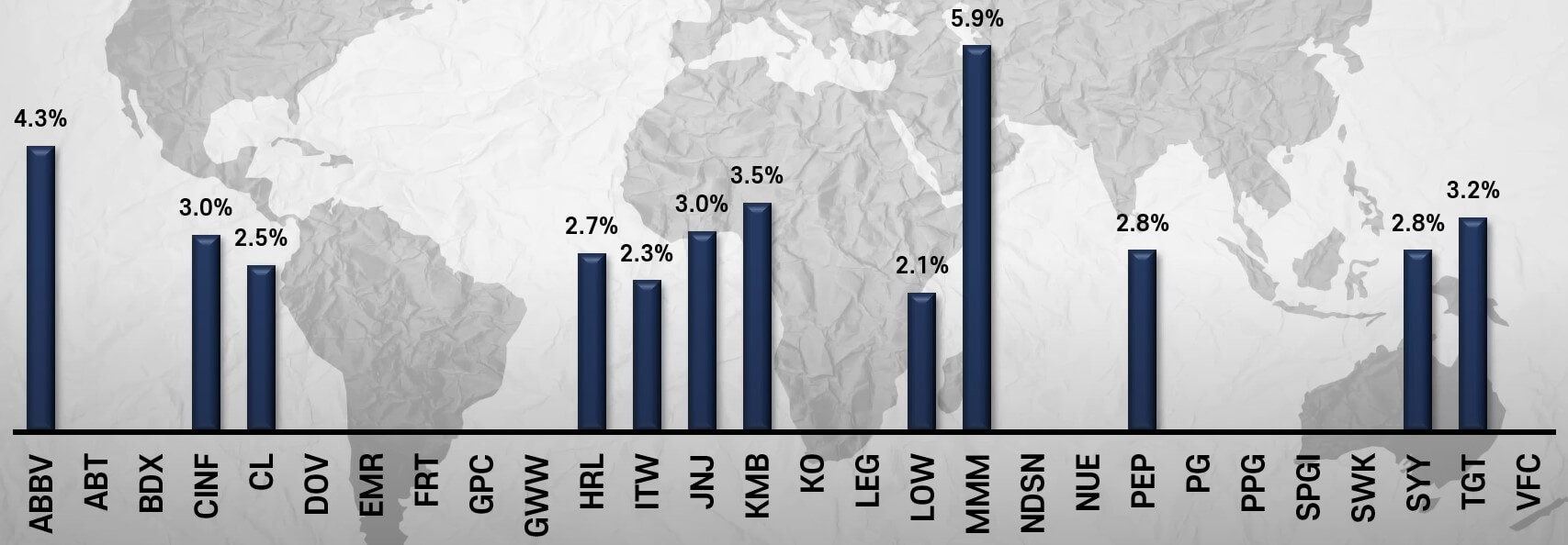 배당 왕족주는 미국에 상장된 모든 기업들 중에서 50년 이상 연속으로 배당을 증가시켜 온 기업을 말합니다. 그래서 현재 49개가 있습니다.
